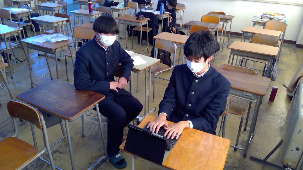 11月18日(金)帰りのホームルームで、「生徒用タブレット」(Surface Go3)の保護カバーを配布しました。