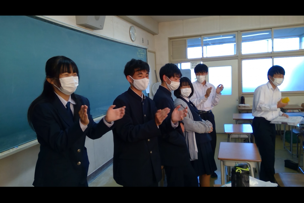 生徒たちは早速配布されたカバーを取り付けて、使い心地を試していました。