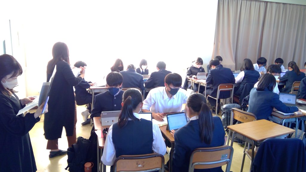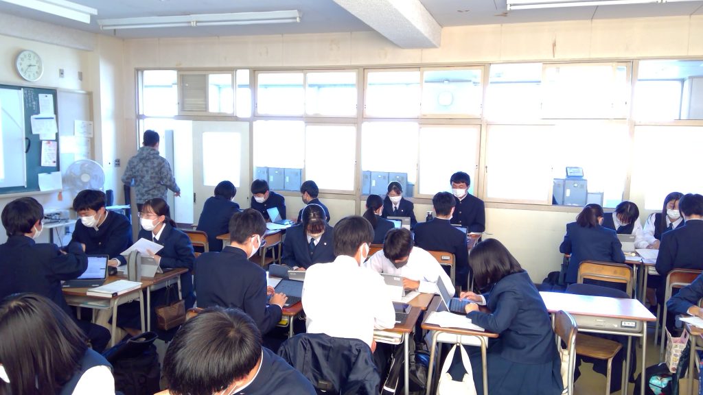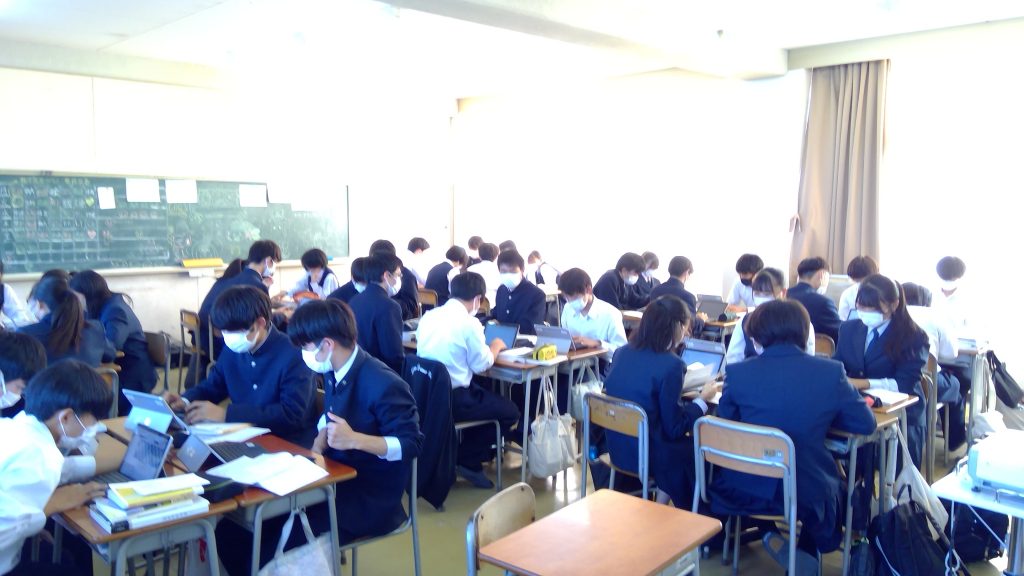 「PowerPoint」に不慣れな生徒もいましたが、各グループとも懸命に発表へ向けて準備を進めていました。