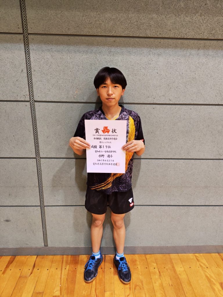 ・男子シングルス第17位 水野遥斗(県大会出場)