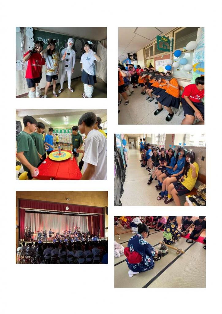 一日目、吹奏楽部発表から見学しました。様々な曲を演奏してくれましたが私は魔女の宅急便コレクションが印象に残っています。ジブリの世界観に魅了され生演奏に酔いしれました。素敵な演奏ありがとうございました。次に、クラス紹介ではクラス別に企画をスクリーンで上映し各クラス工夫を凝らし準備の様子やアピールポイントを分かりやすく説明をしてくれました。又、生徒会プレゼンツ「魔女と野獣」では生徒会の皆さんの劇でしたが音響にもこだわりがあり観ている人を惹きつける劇でした。時にはクスッとなってしまう場面もありエンドロールも本格的でした。