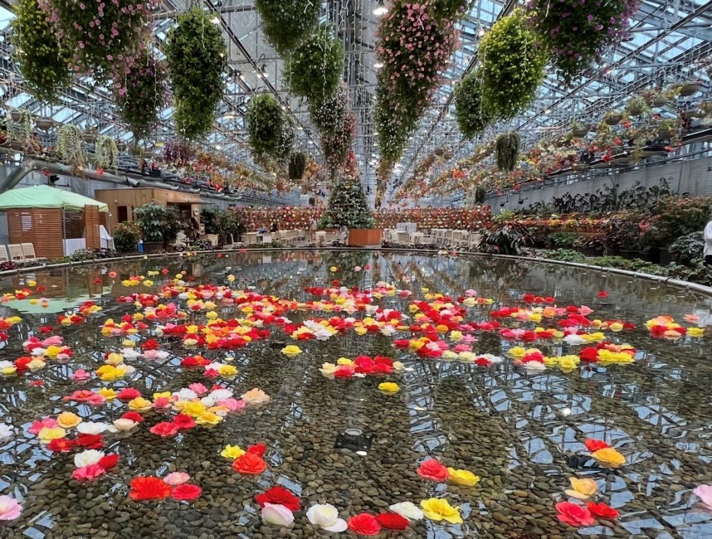 その後、三重県桑名市にある「なばなの里」を訪れ、園内を散策しました。ベゴニアガーデンやバラ園には色とりどりの花が咲いており、記念撮影する保護者の姿も見られました。お土産物店で買い物をしたり、売店でソフトクリームを買って食べたり、思い思いに園内での時間を楽しんでいる様子でした。