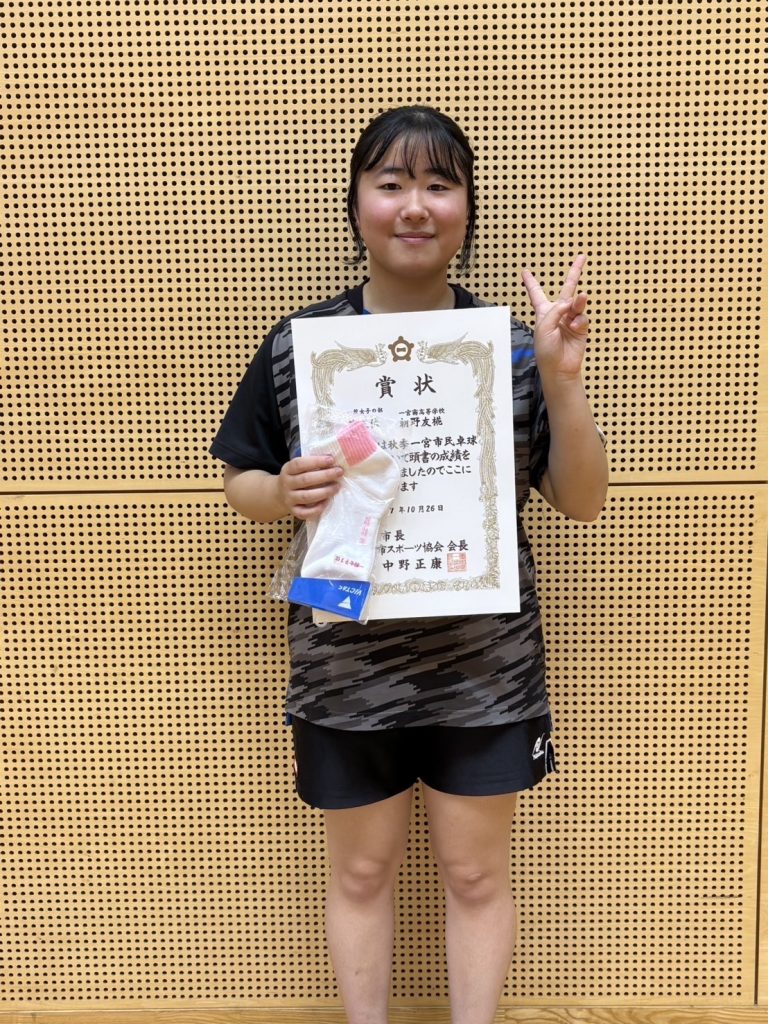 お知らせ/卓球部/部活動 卓球部 秋季市民大会で第3位! 2025年10月28日 令和7年10月26日(日)に、一宮総合体育館にて秋季一宮市卓球大会(個人戦)が開催されました。 南高からは生徒全員と顧問2名が申込み、2年生の朝野さんが一般女子の部で第3位(2年連続)、顧問1名が男子35歳以上の部で準優勝(2年連続)しました。 今年度は大会の参加人数が多く時間がかかりましたが、予選リーグの3・4位のトーナメントも実施され、充実した大会となりました。